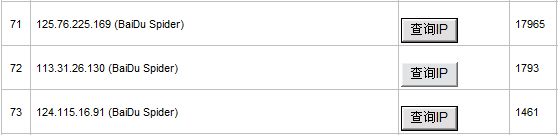 每周三我都要對該電子商務(wù)網(wǎng)站進行周日志的分析,以便來統(tǒng)計上一周的優(yōu)化效果,在本周進行對網(wǎng)站日志進行分析查看時,我發(fā)現(xiàn)了幾個不屬于認識中的“蜘蛛IP”,如圖:
