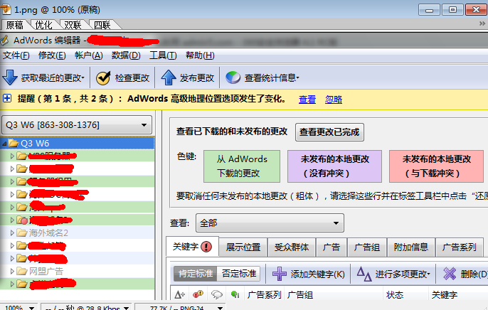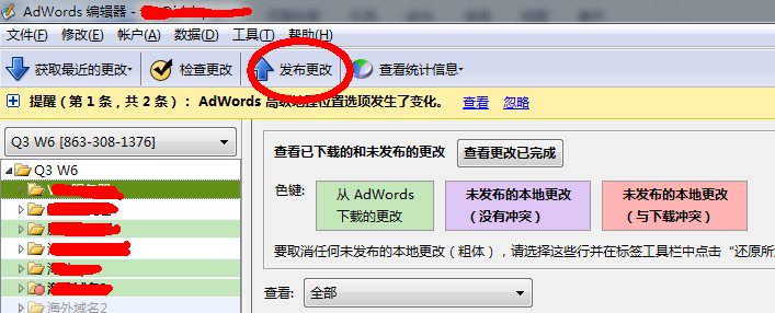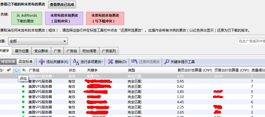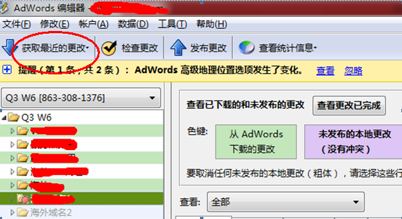 另外一項(xiàng)重要功能就是,查詢關(guān)鍵詞的更新狀況,大家都知道,現(xiàn)在GOOGLE的服務(wù)器放置在香港,大陸地區(qū)打開的速度是很慢的, 而且由于GOOGLE廣告設(shè)計(jì)上的缺陷,有時(shí)候近期有添加或者更改的關(guān)鍵詞,經(jīng)過了一周或者半個(gè)月的時(shí)間還是無法查看到審核通過信息時(shí),你就可以通過這個(gè)工具的“獲取最近的更改”功能查看關(guān)鍵詞的更新狀態(tài),如圖所示: