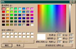 2.選擇前景色。選擇格式-〉字體,在字體顏色中選取"其他顏色"。彈出顏色對話框后選擇"自定義",彈出Windows的標(biāo)準(zhǔn)顏色對話框(如圖):