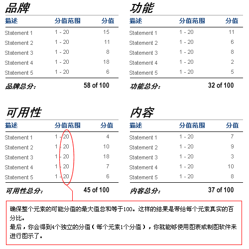 一旦你完成了這個(gè)分析的第一部分,四個(gè)欄目中的每一個(gè)描述就都有了一個(gè)對(duì)應(yīng)的分?jǐn)?shù)。