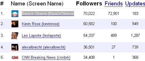 這一點(diǎn),可以參考Twitter的數(shù)據(jù),在http://www.twitterholic.com/(請(qǐng)注意這些公眾人物的追隨者與朋友的比例)