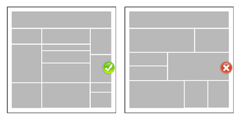 在板塊排布的時候在視覺上盡量在符合縱向分割,能在縱向上對齊。避免在縱向上出現(xiàn)犬牙交錯的布局,見下圖。當(dāng)然,橫向和縱向都能對齊那就更好了。但對于大部分門戶網(wǎng)站來說比較難。
