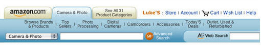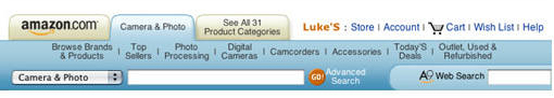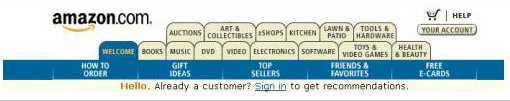 這一個(gè)問題在購物網(wǎng)站上表現(xiàn)得猶其突出?纯磥嗰R遜網(wǎng)站之前的導(dǎo)航,有一種讓人窒息的感覺,在導(dǎo)航條上就容易讓用戶產(chǎn)生迷失的感覺。