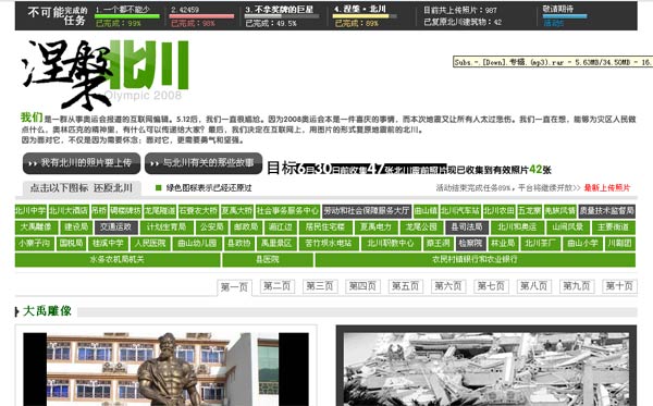 同時我們在設計上也進行了一些嘗試,可以看到頁面上黑、白、灰的大面積地運用(這和奧運會官方的色彩有點違背);“涅槃北川”大膽的留白手法;“不拿獎牌的巨星”自適應的通欄FLASH頭圖推薦位以及LOGO化的標題設計等等。這些都是以往我們不太常用的做法?赡苡腥藭岢鲞@樣設計太小眾,其實不然, 因為人們的審美是有不斷提高的需求的,當眼睛面對一種東西太久,必定會要求有新鮮的感受來刺激。所以這個設計從后期的用戶數(shù)據(jù)來看效果是不錯的。而且,利用空間中的留白是非常重要的,也是提升藝術性的途徑,很多網(wǎng)頁盡管是設計得很精細很周到,但是看起來顯得乏味,就是沒有控制好留白,造成了整體上的平庸。留白也可以給人帶來心理上的輕松與愉悅, 可以達到非常好的效果,例如一個生活休閑類的網(wǎng)站,設計者要傳達給使用者的一個信息就是要是讓他們輕松隨意的感受,如果能通過網(wǎng)頁設計反映出這種感情色彩,顯然這樣的設計是較為高明的設計。能實現(xiàn)嗎?可以的,在網(wǎng)頁上的進行恰當?shù)牧舭拙涂梢,讓留白更多的顯示出自己的特色,在圖片和文字的之間留出空間賦予頁面生命力,讓頁面呼吸。