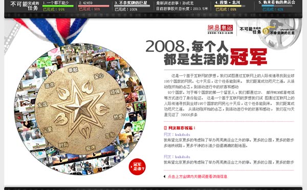 奧運頻道的特色策劃—“不可能完成的任務”這個系列專題從視覺設計上來看,它融入了許多國際化的元素,配合網(wǎng)友互動平臺,使到整個系列的品質(zhì)感得到有效的推廣。這種模式很適合這個主題,并且在眾多的奧運專題頁面中具有比較強的視覺識別性,雖然整個互動的環(huán)節(jié)還有很多細節(jié)需要完善,但作為一個短期的專題項目來說,它在很多方面做得還是不錯的。
