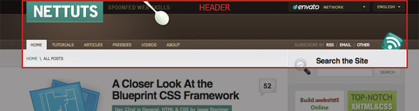 這些是web頁(yè)面的主要元素。有很多不同的方法去組織它們,但是這種布局也許是最常用的。
