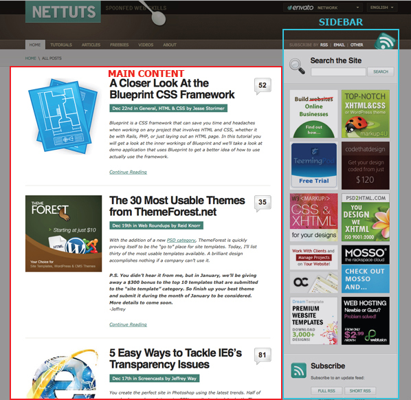 你可能有強(qiáng)烈的愿望去填充這些頁(yè)面上的空白,但是請(qǐng)不要這么做。“空白”也是相當(dāng)重要的。你可以看看NetTuts網(wǎng)站是如何有效的使用空白區(qū)域的,創(chuàng)建了頁(yè)面平衡給人一個(gè)好的感覺(jué)。