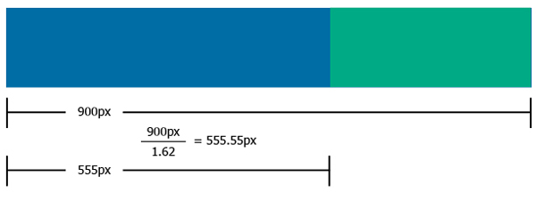 使用黃金分割是非常簡(jiǎn)單的。比如你像找到你主要內(nèi)容和sidebar列表的寬度。你將使用你內(nèi)容區(qū)域總的寬度除以 1.62. 然后得到555.55px. 我們不需要那么精確,所以我們就用555px。現(xiàn)在你就知道你的主要內(nèi)容元素是555px的寬度,你的sidebar是345px?纯炊嗝慈菀?!