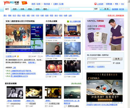 所以我們要以一個視頻門戶用戶的角度來體驗優(yōu)酷,優(yōu)酷首頁整體比較淡雅,欄目分類、搜索區(qū)域、廣告區(qū)域等結(jié)構(gòu)布局比較清晰,但個人覺得第一屏圖片過多,會有點突不出重點,這也是門戶網(wǎng)站內(nèi)容過多所導致的一個問題,有時會忽略掉右側(cè)的很淡的登錄區(qū)域,建議中間6個小視頻可以改成圖文混和的方式會使頁面有個過渡,這樣感覺左右平衡些。