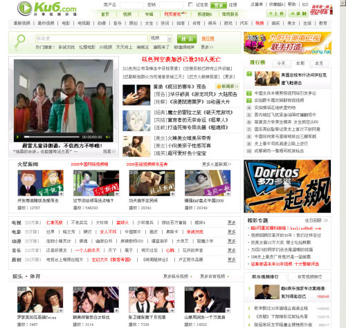 酷6首頁整個給人很清新的感覺,在色彩上處理的很好,第一屏內(nèi)容相比優(yōu)酷就比較平衡,圖文混搭的很合理,其他的布局和優(yōu)酷類似,基本格局還是很清晰,由于酷6在顏色上處理比較好,所以整體感會比優(yōu)酷稍好;但我發(fā)現(xiàn)頁面頂部的導航欄非常擁擠,上面分了6個大分類,下面有分類10幾個小類,甚至酷6還做起代理網(wǎng)頁游戲的業(yè)務(wù),看來盈利的壓力確實很大啊,不得不開展比較賺錢的游戲業(yè)務(wù),最令我受不了的是最右側(cè)竟然還擠進一個可口可樂廣告,以至于登錄框不得不和導航欄靠得很近,我差點沒找到哪里登錄。