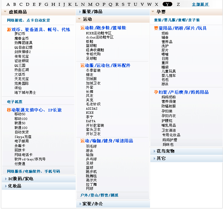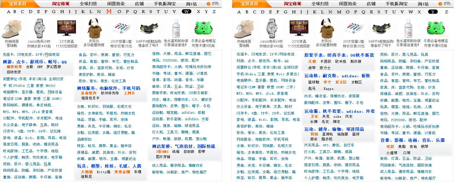 新的一年,新的淘寶網(wǎng)的首頁也經(jīng)歷了一次艱難的改版,一直是受人關(guān)注的焦點(diǎn)的首頁,每次一個小的改動一定會讓你深刻體會一句話即"牽一發(fā)而動全局",而在淘寶網(wǎng)上那個龐大的類目,也是很多人視為淘寶網(wǎng)首頁甚至整個阿里巴巴集團(tuán)最經(jīng)典也最專業(yè)的一個商品垂直頻道.經(jīng)過多年的歷史洗禮.很多人會發(fā)現(xiàn)這個類目表也日漸的龐大.有幸參與設(shè)計了首頁的這一塊的交互創(chuàng)新.這個龐大的類目表是否還是用戶所需的,是否用戶的體驗(yàn)好呢?通過UED用研部門的專業(yè)分析也得出了一定的結(jié)論.