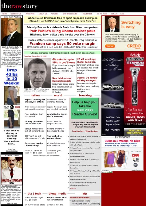 The Raw Story看上去處處都有可能有廣告擠進來,損害了內(nèi)容的易閱讀性。
