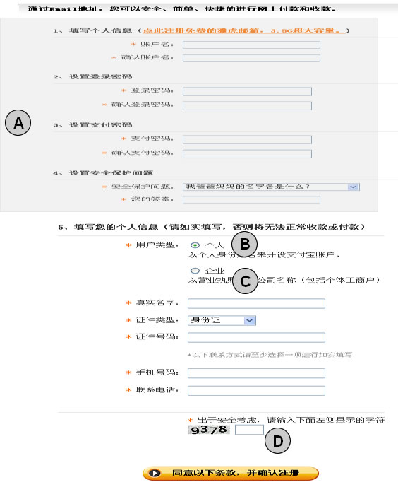 這類流程需要根據(jù)實(shí)際的情況來優(yōu)化。下面以目前支付寶的手機(jī)注冊(cè)和郵箱注冊(cè)頁面為例。