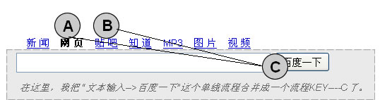 這是最基礎(chǔ)的流程,它永遠(yuǎn)符合單線流程,比如百度搜索,輸入關(guān)鍵字------->百度一下