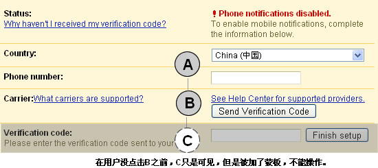 我設(shè)計(jì)的并不是特別好,這里的C應(yīng)該被近一步弱化,只有當(dāng)手機(jī)短信延遲相當(dāng)厲害而影響用戶繼續(xù)注冊(cè),才讓用戶采用比較高成本和陌生的語音獲取驗(yàn)證碼。