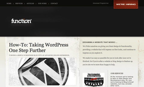 Function 有個“我們正在招聘”的鏈接在它們的工作頁面。為了確保這個鏈接不被忽略,設(shè)計師給它設(shè)置了一個從深色背景的頁眉突出出來的紅色的背景,有效的抓住了注意力。