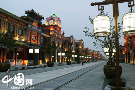 現(xiàn)代人新修繕的前門大街。這條大街的北段,基本上是依照原有建筑翻新的,可以理解為新古典主義吧。南段則是新建的房子,由于沒(méi)有明確的參照,設(shè)計(jì)師可以自由發(fā)揮,這給飽學(xué)了現(xiàn)代主義理念的設(shè)計(jì)師提供了機(jī)會(huì),設(shè)計(jì)了很據(jù)現(xiàn)代主義的房子—無(wú)裝飾的,平頂,方方正正的(也許可以節(jié)約建筑成本,至少在現(xiàn)代主義興起的階段是這樣考慮的)。作為一條傳統(tǒng)商業(yè)街上的建筑,使用了與周圍大雜院一致的灰色,門窗上適當(dāng)使用了一些傳統(tǒng)元素。大概應(yīng)該算是后現(xiàn)代主義吧。