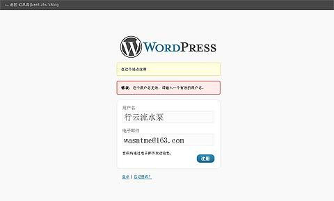 結果,在點擊“注冊”按鈕后,無情地顯示了這條信息:“錯誤:這個用戶名無效,請輸入一個有效的用戶名!