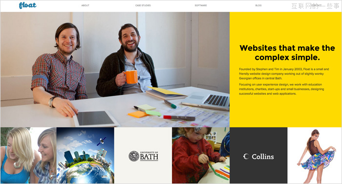 樸實素凈的頁面,利用黃藍的背景和元素點綴,豐富了頁面內(nèi)容,增加頁面活力。