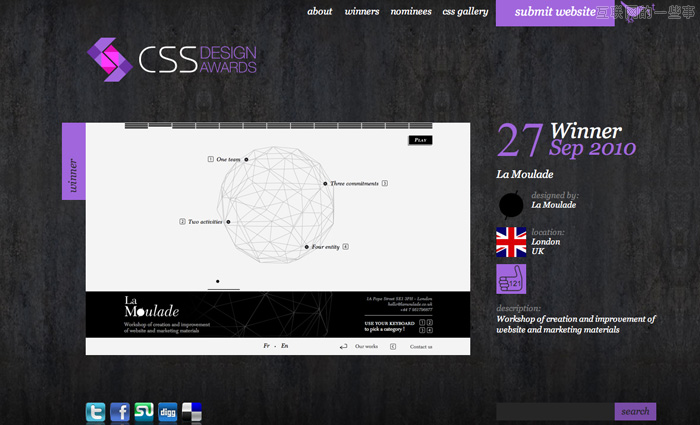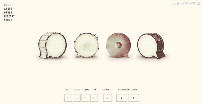 LOGO采用幾何圖形的表現(xiàn)方式,導(dǎo)航則巧妙的使用了輪盤的表現(xiàn)形式,使原本信息量不大且方正的頁面看起來活潑和飽滿。