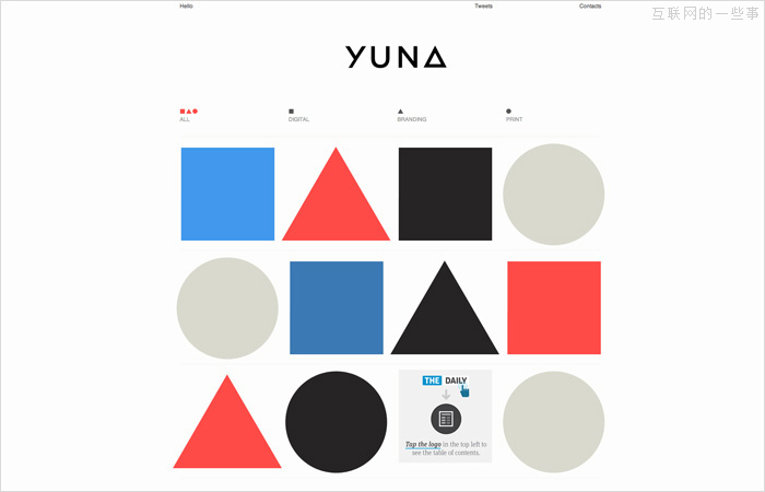 圖形化為中心的個人網(wǎng)站,由于信息不多,大膽的采用了大面積留白設(shè)計,巧妙之處在于在留白的基礎(chǔ)上以圖形作為網(wǎng)站的主要特色和主旨,通透活潑而不失嚴謹。
