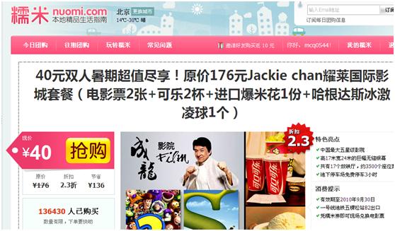 本來很不想寫這篇文章,因為誰看了,都會覺得是給糯米網(wǎng)做了AD,怕別人誤會。但我寫博客有時候就看感覺和靈感,突然覺得有個好的素材,就會忍不住寫出來和大家分享。所以冒著別人誤會是AD的嫌疑,我還是把這篇文章寫了。今天最大的遺憾是沒能在活動結(jié)束前的10小時里寫出來,寫完這文章的時候已經(jīng)晚上11點20,活動馬上就要結(jié)束了,沒能有時效性,文章也就沒那么有意思了。這次也是給自己的經(jīng)驗教訓(xùn),做事情不能顧前顧后,去擔(dān)心別的一些流言蜚語。像寫博客這些事情,應(yīng)該就按自己的感覺走,做個最真實的自己。