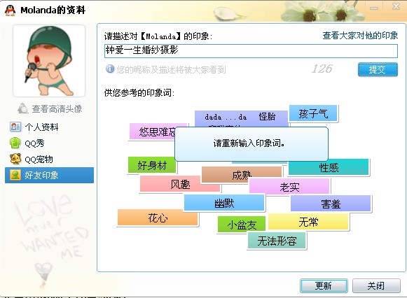 QQ聊天軟件還有一個應(yīng)用叫“好友印象”,這東西也是一個用來搞推廣的好東東。它不光可以搞主動推廣,還可以搞被動推廣,如果操作得當(dāng)效果也相當(dāng)可觀。