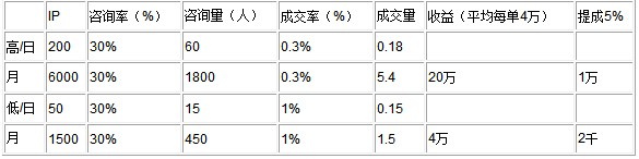 咱們也不能忘了自己,呵呵,算下你自己的提成:每單按照平均下來按照4萬的裝修,你的提成按照5%,如果平均簽單量是3單,一個(gè)月12萬的單子,那么你的提成就是6千,這個(gè)轉(zhuǎn)化率雖然很低,但收益非常高。