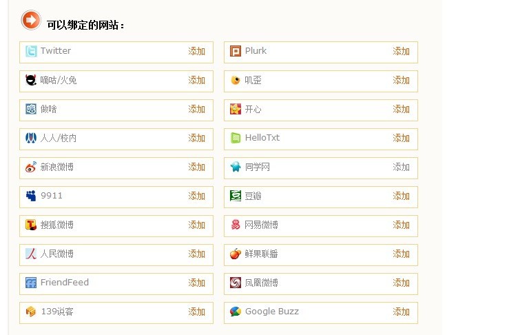 做啥:做啥網(wǎng)可以把消息同步到“Twitter、Buboo、嘀咕、9911微博客、新浪微博”