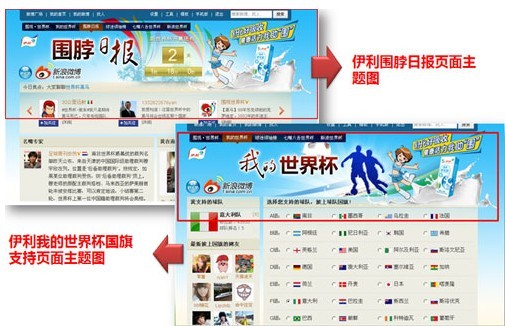 世界杯期間,伊利營(yíng)養(yǎng)舒化奶與新浪微博深度合作,在“我的世界杯”模塊中,網(wǎng)友可以披上自己支持球隊(duì)的國(guó)旗,在新浪上微博為球隊(duì)吶喊助威,結(jié)合伊利舒化產(chǎn)品特點(diǎn),與世界杯足球賽流行元素相結(jié)合,借此打響品牌知名度,讓球迷產(chǎn)生記憶度。在新浪微博的世界杯專(zhuān)區(qū),已經(jīng)有兩百萬(wàn)人披上了世界杯球隊(duì)的國(guó)旗,為球隊(duì)助威,相關(guān)的博文也已經(jīng)突破了3226萬(wàn)條。同時(shí),通過(guò)對(duì)微博粉絲的比較,選出粉絲數(shù)量最多的網(wǎng)友,成為球迷領(lǐng)袖。
