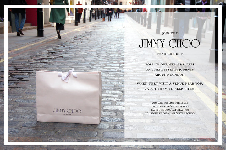 Jimmy Choo已經(jīng)成為社交媒體中一個(gè)引領(lǐng)者,這很大程度上得益于它在2010年春季的活動(dòng) Catch-a-Choo Foursquare (美國(guó)很受歡迎的簽到社交媒體),活動(dòng)要求女性圍著倫敦跑,作為獎(jiǎng)勵(lì),她有機(jī)會(huì)獲得一雙新上市的運(yùn)動(dòng)鞋。Jimmy Choo使用Foursquare在不同的時(shí)尚場(chǎng)所來簽到,簽到是通過Facebook和Twitter發(fā)布,第一個(gè)到達(dá)各個(gè)簽到點(diǎn)的人會(huì)獎(jiǎng)勵(lì)一雙運(yùn)動(dòng)鞋。