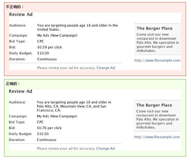 請將廣告定位于可能會對你的廣告感興趣的受眾。對于每個廣告,你可以選擇特定的地區(qū)。確保你的業(yè)務(wù)和產(chǎn)品和此地點相關(guān)。比如,如果你的服務(wù)或活動僅在特定的區(qū)域有效,請選擇合適的目標(biāo)地區(qū)或者城市。同時,廣告最好使用該地區(qū)主要的語言,這樣能得到更好的效果。