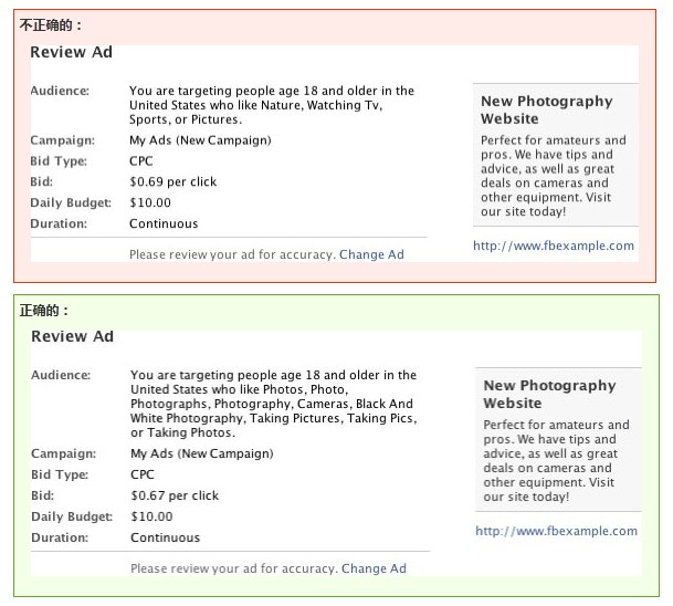 你的廣告應(yīng)該直接把用戶鏈接到最相關(guān)的頁面。當(dāng)一個Facebook用戶點擊你的廣告時,他們應(yīng)該被立即鏈接到一個與你廣告中的信息或產(chǎn)品有具體關(guān)聯(lián)的頁面。