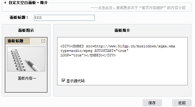 在首頁內(nèi)容維護(hù)中新建自定義空白面板,將代碼