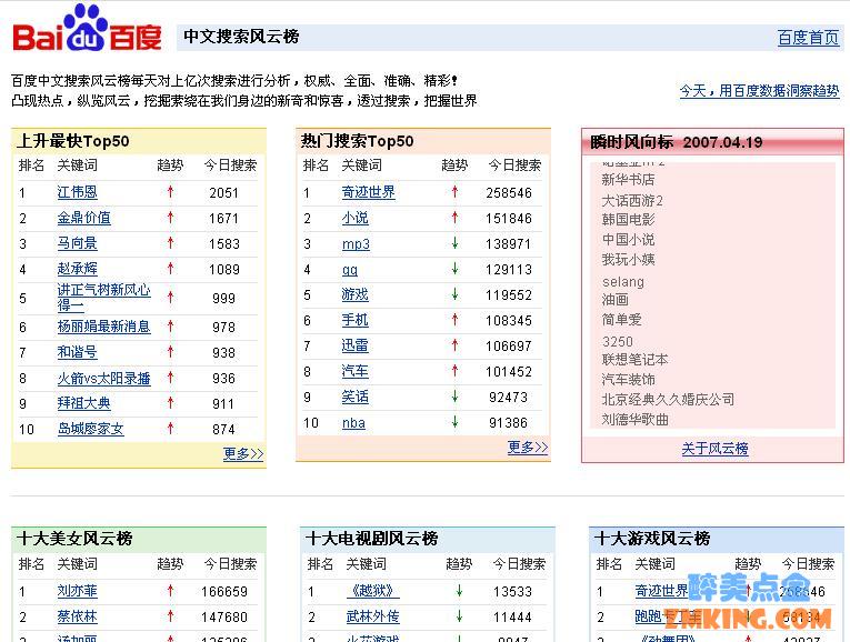 百度的搜索風(fēng)云榜 http://top.baidu.com/
