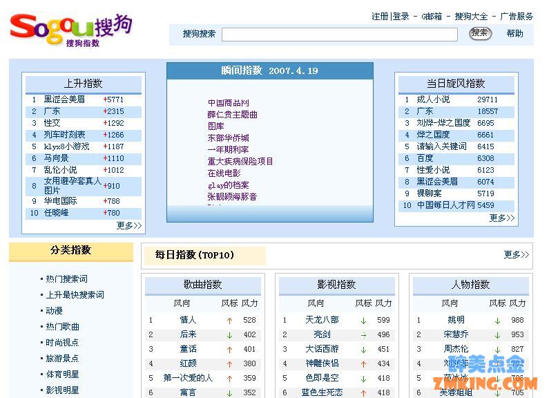 搜狗的搜狗指數(shù) http://www.sogou.com/top/index.html