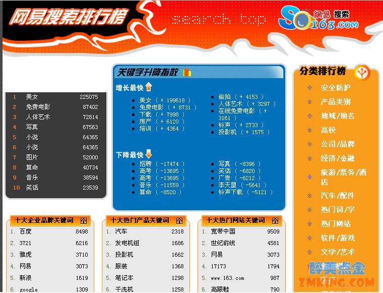 網(wǎng)易的搜索排行榜 http://so.163.com/list.html