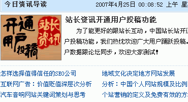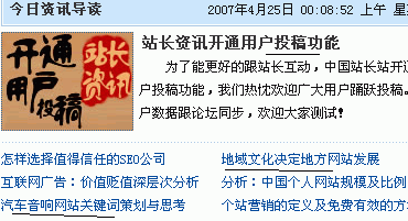 Admin5和Chinaz 兩大網(wǎng)站,還有眾多的站長(zhǎng)資訊網(wǎng)站都蓬勃的發(fā)展草根資訊信息,似乎越來越起勁,對(duì)我們個(gè)人站長(zhǎng)來說是好事,除了在上面看到更多站長(zhǎng)故事和站長(zhǎng)經(jīng)驗(yàn)以外,我想到更多的是讓這些網(wǎng)站給我們個(gè)人網(wǎng)站打工,讓他們來幫我們推廣,讓圖王 ,阿飛,甚至Donews的劉韌,Techweb的祝志軍一起給我們站長(zhǎng)打工。哈哈,樂死我了,下面分析一下我的攻略和想法。